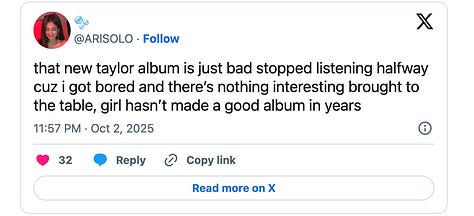 Taylor Swift’s new album released yesterday and the internet is ablaze with its thoughts. Of course there’s always a plentiful abundance of hot takes, but what has surprised me is the many fans who are calling the album objectively terrible. I guess it only serves to highlight the reality that sin - when pursued to its final end - actually ends up quite hideous and ugly.
