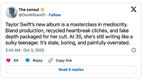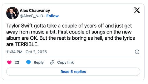 These are some of the lyrics from Taylor Swift’s new album. An album which I have seen moms bring their 6 year old daughters to launch parties for. Eight out of the twelve songs on “The Life of a Showgirl” are labeled explicit, marking the most Swift has sworn on one album in her career. But Christian women can’t wait to serve it up to their little sweeties! Because #beats and #vibes.